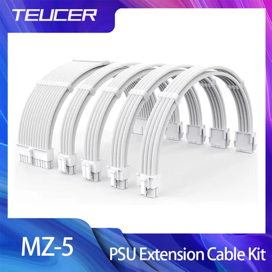 TEUCER CPU PSU Extension Cable 30Cm 3 in 1 Motherboard ATX 24Pin GPU PCI-E 6+2Pin 8Pin CPU EPS 4+4Pin 18AWG Power Cord with Comb