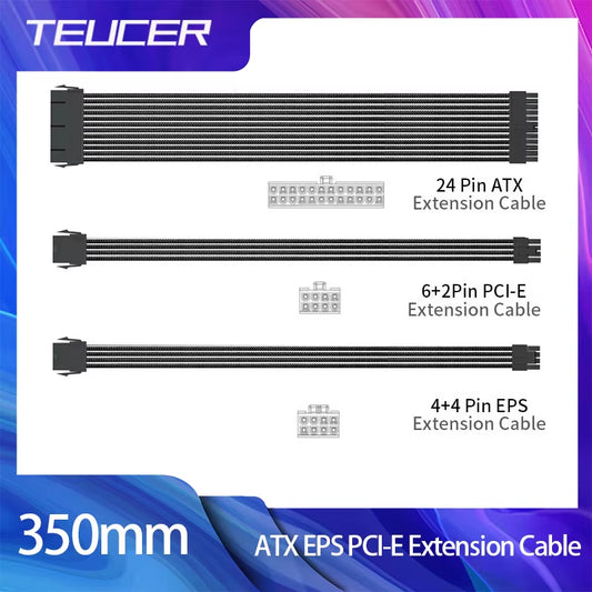 TEUCER EPS ATX PCI-E Extension Cable 350Mm 24PIN 4+4PIN 6+2PIN 8PIN PSU CPU GPU Motherboard Extension Cord
